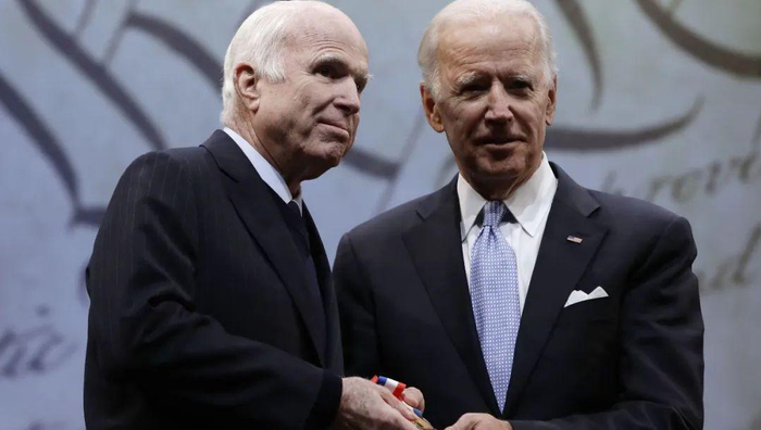 拜登是约翰·麦凯恩(John McCain)担任美国参议院海军联络员时的密友,1979年,拜登和他的妻子吉尔与麦凯恩在夏威夷参加海军招待会时,麦凯恩第一次遇见了他未来的妻子辛迪。他们催促他过去和她交谈。