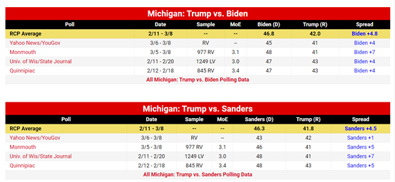 同时,民调也显示,密州的选民目前对于民主党是有信心的,不论拜登或者桑德斯,他们与特朗普对比时的支持度都有一定优势,这对于当下的初选来说,无疑是个比较好的消息。