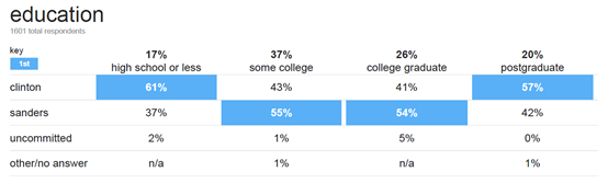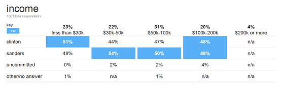 当然,桑德斯在这四年间绝非毫无收获,他在西裔选民中享有很高的支持度,这使得他至少在特定的少数族裔上能够收获不少选票。在“超级星期二”以及之前的初选中,正是西裔选民的投票帮助桑德斯一举拿下内华达、犹他等西部州份,在初选中至少保有一定的竞争力。此外,根据一些分析,桑德斯在该州的阿拉伯裔选民中也颇受欢迎,然而,西裔人口、包括其他少数族裔在密歇根的有限分布,导致他的这些优势无法折现为足够多的选票。于是,桑德斯在族裔问题上的尴尬局面,进一步拉大了和对手的差距。