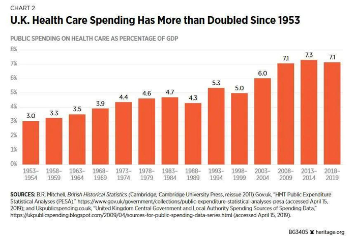 NHS是英国公共福利项目的招牌,也是一项惠国惠民的举措。它建立于1948年,响应了当时西欧的福利社会潮流,以平等理念为宗旨,让上至贵族,下至贫民,都有免费就医的机会,数十年来被英国民众所拥护,也是历次首相竞选,政党交锋的重要战场之一。(围绕对NHS的改革和财政支出)
