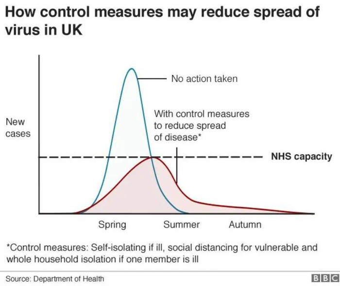 新冠疫情肆虐环球,欧洲成为重灾区,当意大利、西班牙等国相继宣布封锁全国时,英国却采用了相对温和、被舆论诟病为懒政的决定,在首相鲍里斯·约翰逊的讲话中,他呼吁人们在家隔离七天再外出,尽量减少外出活动,但与此同时,他提出了“群体免疫”的策略(这个策略出自政府科学顾问的建议),大意是:政府认为英国已经错过了遏制新冠病毒传入英国的黄金期,病毒蔓延已成必然,在这种情况下,政府所能做的是延缓疫情爆发的时间,维护医疗系统的稳定运行。而长久来看,要战胜疫情,需要指望英国70%以上的人感染、康复后获得免疫能力。
