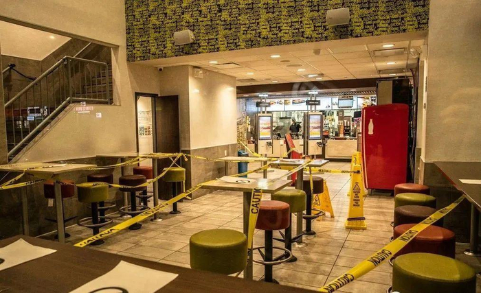 座椅全都翻了上来,不许停留。只能外卖。麦当劳也一样: