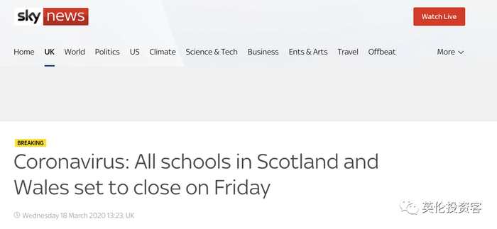 二。苏格兰威尔士官宣停课,英国今晚宣布全部停课