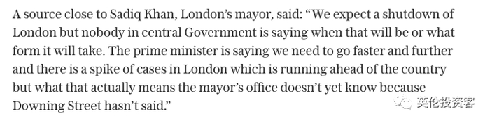 另据英国《每日电讯报》刚刚报道,英国伦敦市长办公室预计,伦敦将在未来几天内封城。