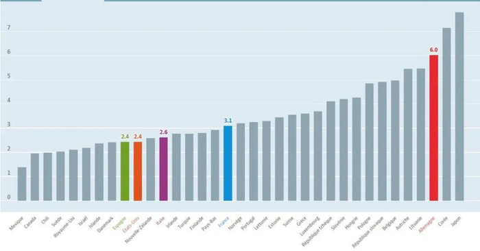 相比,法国同样的居民数只拥有309个床位,意大利只有262.5个。从数据上看法国并没有比意大利高多少!