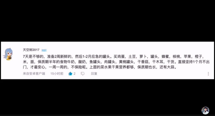 请大家和家人放心,我已经囤好食物、用品等,现在在家里待着准备不出门了。