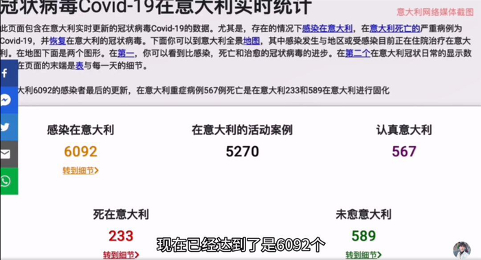 视频发布前,意大利又更新数据了,意大利有821人感染。