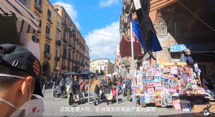这就是意大利,欧洲爆发病毒最严重的国家,我现在所在的城市是意大利南部最大的城市那不勒斯,正如你们现在看见的,整个城市和平时一样热闹,虽然南部没有北部那么严重,但是坎帕尼亚大区已经有38个确诊的了。