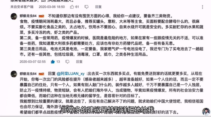 如果你对意大利以及海外防疫现状及生活感兴趣的话,可以持续关注@阿栾LUAN_xy的海外防疫日记,他记录意大利防疫日记的vlog会在西五街、微博、抖音以及B站同步更新。