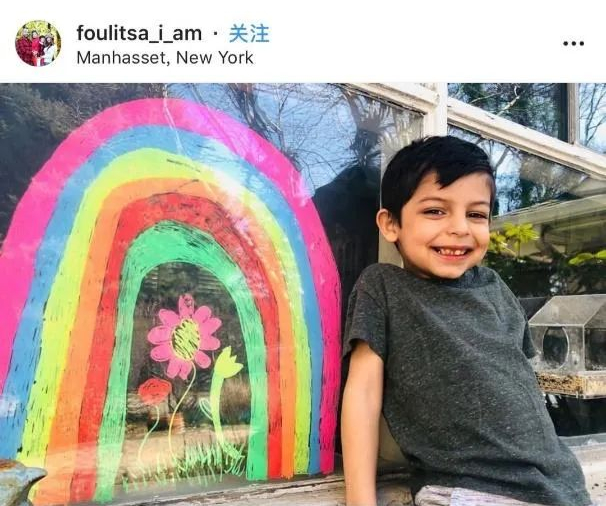 随着美国很多中小学停课,少了伙伴的孩子们失去了很多乐趣。来自纽约长岛的三位母亲3月18日在脸书上发起了“Rainbows over Nassau and Suffolk Counties and Beyond”受到了27000位成员关注。这一想法的初衷是通过让孩子自己设计彩虹图案,走出房间与同伴在社交媒体上分享,既让孩子缓解居家生活的乏味,又能搭建起一座孩子之间的桥梁。创意四射的孩子们拾起画笔,任自己纯真的思想在纸上、窗户上、自家院子里流淌,甚至给人行道上也添上了鲜艳的色彩。后来,越来越多人家里挂上了彩虹。