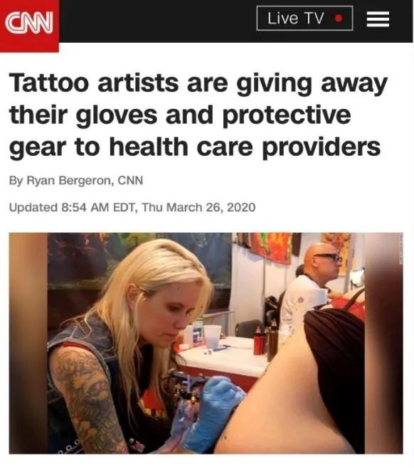 随着疫情爆发,全美各地的纹身工作室纷纷闭门谢客,纹身师们决定捐赠储存的防护装备。“我们作为专业人员,要给另一行业的专业人员提供支持。保护社区居民的健康是我们共同的责任。我们和医护人员有一种共情,因为我们很清楚他们现在承受的风险。”“和患者的生命比起来,我们捐赠的物资不足挂齿。给真正需要帮助的人才能体现这些东西的价值。”“两家医院都非常感谢我带去的物资,能够倾囊相助,让我感到快乐。”