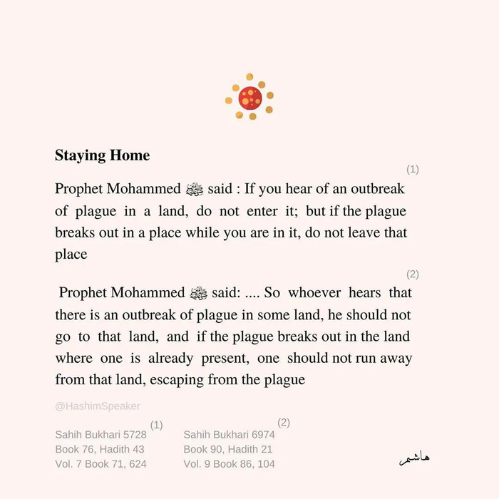 但在这场抗疫中,我们绝不可忽视宗教的力量,这也是我们打破对伊斯兰教刻板印象的一个契机。疫情出现后,各大媒体和社交平台上都在引用和转发先知穆罕默德的圣训来劝告大家留在家中,减少接触。“若听说有地方爆发了瘟疫,你不要进入这片地方;但假如是你所处的地方爆发了瘟疫,你就不要从这片地方出来。”“洁净就是信仰的一半”“下雨天不要来祈祷,不要双膝沾满泥土地走进清真寺(所以更不能将病毒带入礼拜场所)”在我们的认知中,理性是与宗教斗争的产物,宗教又时常与狂热与盲信捆绑在一起,但在这场全世界共同的抗疫战争中,我没有看到标榜着科学与民主的西方展现出来足够的理性与应有的态度,但在阿拉伯半岛上看到了信仰支持下的理性。越发觉得这句话说得特别对:傲慢才是生存真正的障碍。