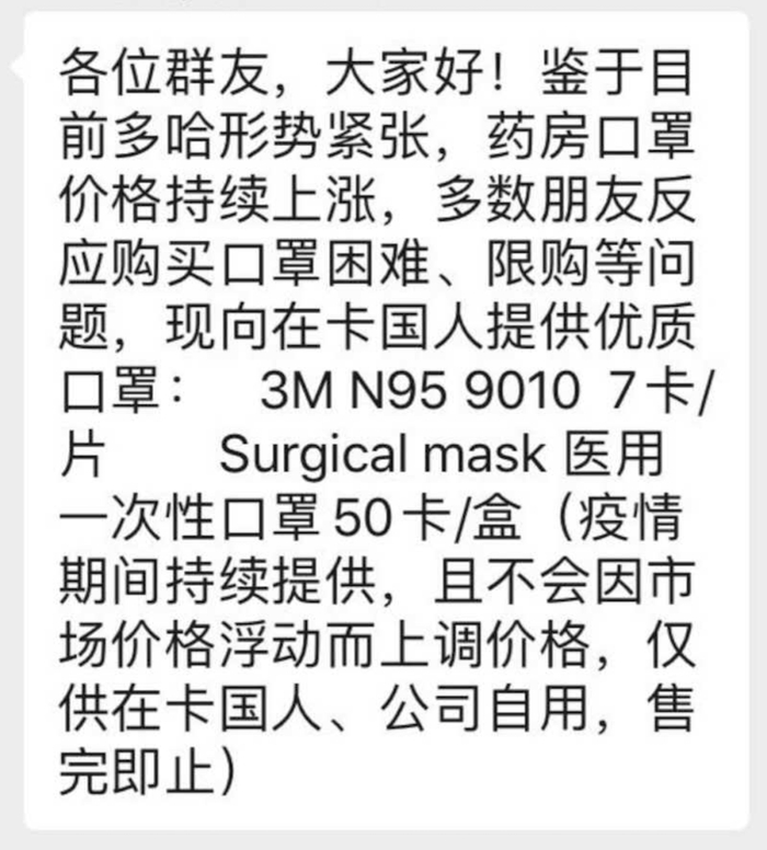 卡塔尔华人群团购口罩