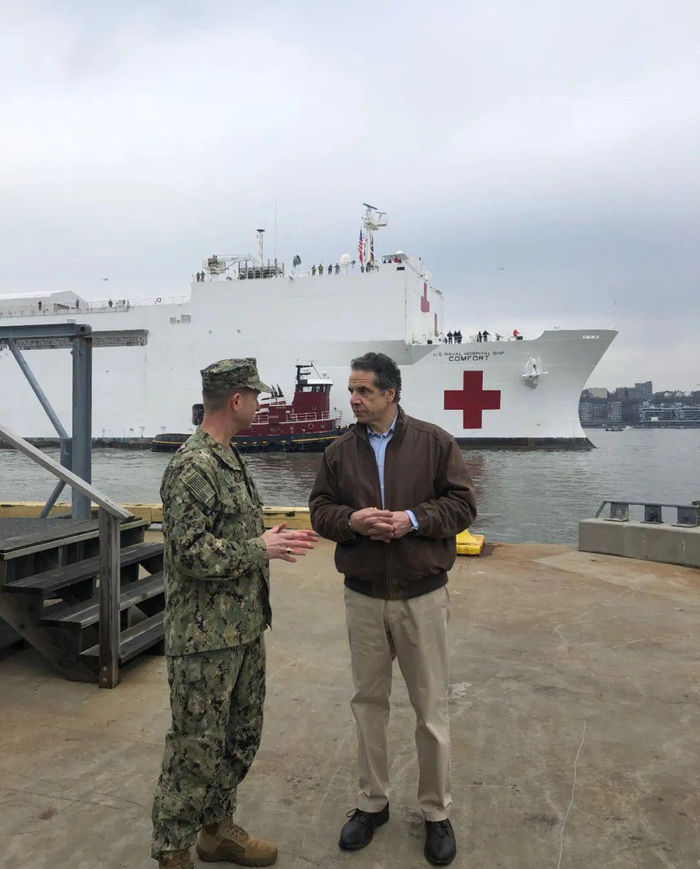 “安慰”号医疗船有1000个床位,刚刚于3月30日抵达纽约。在当时的巨大欢迎仪式上,纽约市长白思豪发表演讲说,“我们的援军终于到了!医疗船将扮演英雄般的角色!”很讽刺的是,有数万纽约人来到码头,围观“安慰”号医疗船进入纽约港。