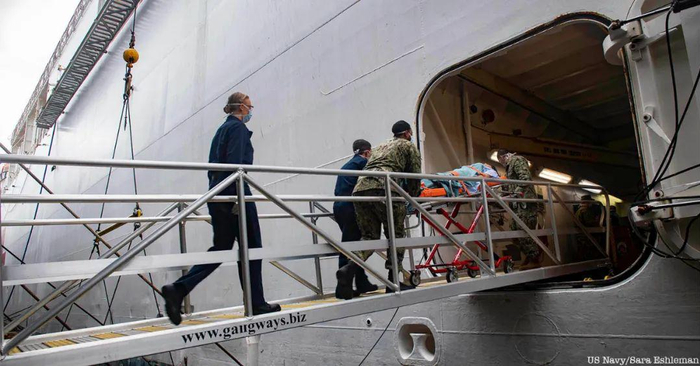 美军的说法是,那几个后来检测为阳性的患者,虽然在船上呆了一个晚上,但都处于隔离状态。这些阳性患者已于4月4日上午被送回由美军负责的贾维茨中心继续治疗,美国陆军工兵部队将贾维茨中心改造成一个3000张床位的临时医院。