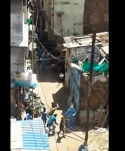 观念:4 月 1 日,印度中央邦印多尔市,医护人员试图检测一位跟新冠患者有过接触的居民,却遭到当地民众砸石头暴力袭击,其中还有人手持棍棒,最终警方出动将医护人员救出,2 名女医生受伤。