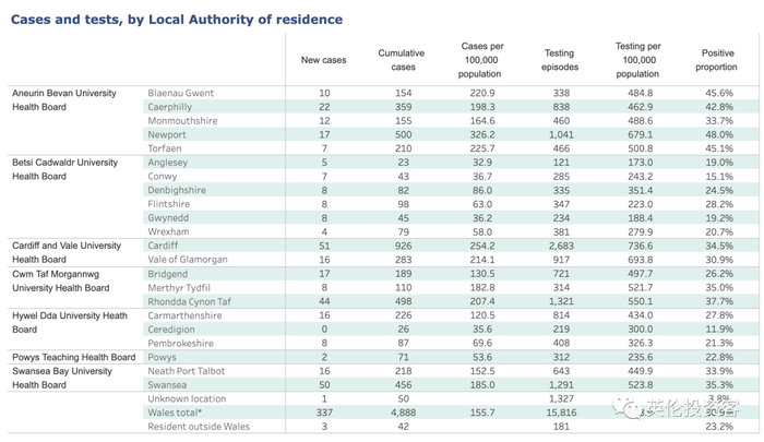 比较每十万人确诊数,英国排名前五的重疫区分别是威尔士的Newport(286)、伦敦Brent(248)、伦敦Southwark(224)、伦敦Lambeth(214)、伦敦Harrow(200)。