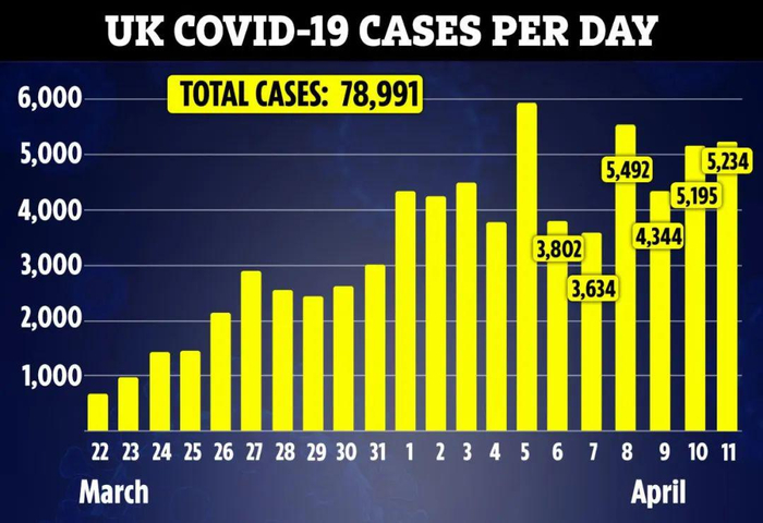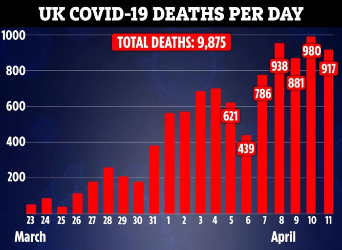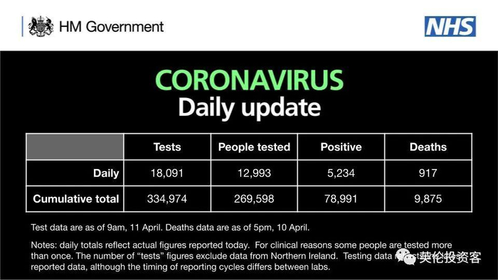 截至4月11日,英国累计确诊78991人,累计死亡9875例,即将破万。另据英国卫生部通报,目前英国共有20101名新冠患者正在医院接受治疗,占到确诊人数的25%。