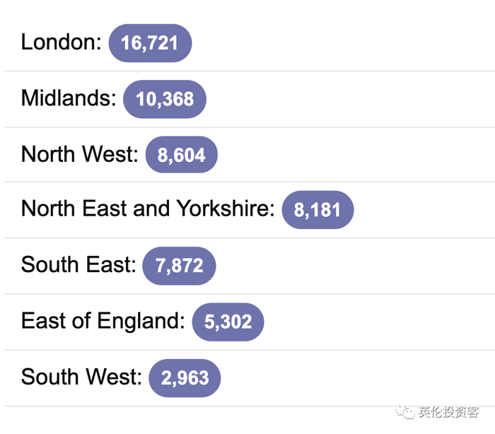 一。 英国最新疫情重灾区曝光从英国疫情分布来看,总的来说,大伦敦地区排名第一(确诊1.6万),然后是英格兰中部(确诊1万)、西北部(确诊8604)、东北部(确诊8181)。