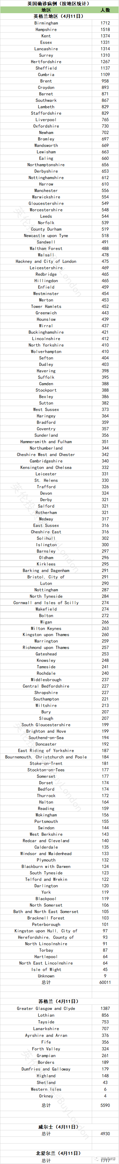刚刚更新的全英确诊具体地区分布(包括英格兰、苏格兰、威尔士、北爱)