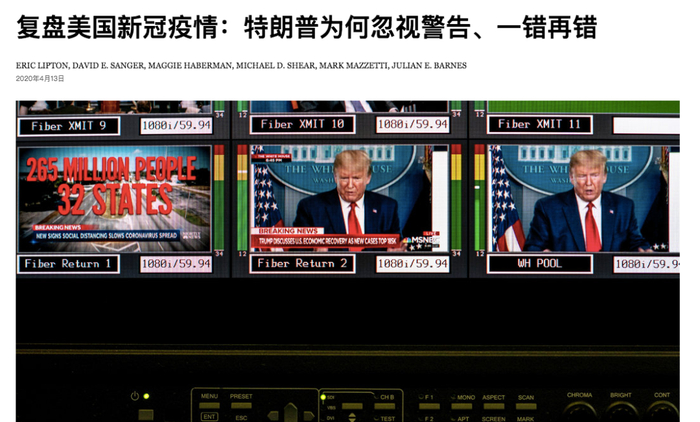 文章提到: “在二月的第三个星期,政府高级公共卫生专家得出结论,他们应该向特朗普推荐新的应对方案,其中包括提醒美国人民注意风险,敦促他们采取保持社交距离、居家办公等措施。但白宫反而将重点放在了信息传递上,又过了关键的几周,专家们的观点才被总统勉强接受——当时病毒的传播基本未受阻止。”引爆点