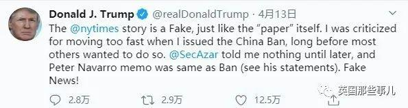 第二天,他就给川普提交了一份“减少感染”的计划,告诉总统美国人民需要采取进一步防范措施。但是川普没搭理。就是这样一份报道,火了!民众都在阅读,各家媒体也在广泛讨论……然后川普,怒了!他拒绝承认自己的错误,并且表示,你们写得这是什么玩意儿!假新闻啊!!他先连发了几条推特,“纽约时报的故事是假的,就像这个报纸本身一样假。我在禁航中国的时候大多数人根本没有想过要这么做,还都批评我动作太快。”