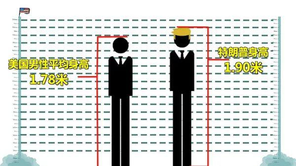 现任总统特朗普身高1.9米,目前美国男性平均身高约为1.78米,基本符合这个理论。