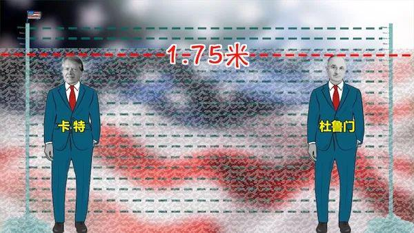 1900年以后,只出现过两位身高不到1.8米的美国总统:卡特和杜鲁门,都是1.75米。