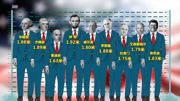最近约120年来,美国总统的身高,都要高于美国男性的平均身高,而且高出不少,11.23厘米。
