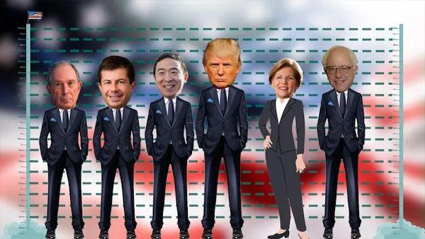 拜登和桑德斯并列最高,1.83米。和1.9米的特朗普比,还是矮了不少。