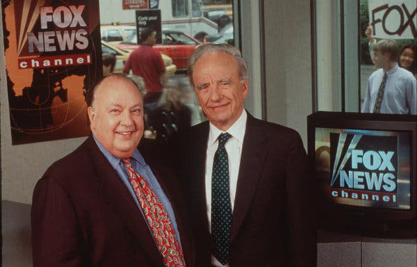 图:福克斯新闻的两位主要创始人,左:罗杰·艾尔斯,右:鲁伯特·默多克。图源:《纽约时报》网站
