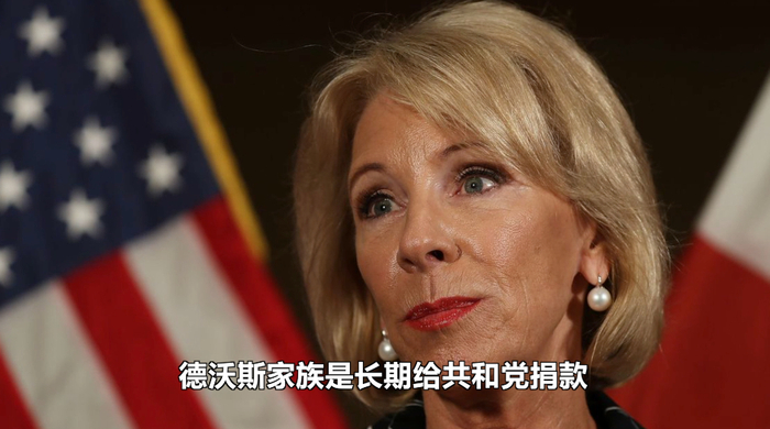 这位女士叫德沃斯,很多美国人不认识她,可她却是负责全美七千多万学生的教育部长。