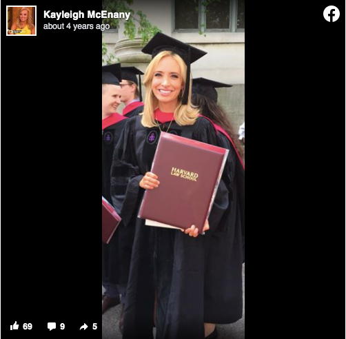 工作三年的她希望能留在狐狸台当评论员,但是台里竞争激烈,麦肯尼资历有所不足。于是她重返学校,在迈阿密大学学习法律,麦肯尼展现学霸本色,成为该专业排名顶尖的1%,随后她转入哈佛法学院,于2017年毕业。