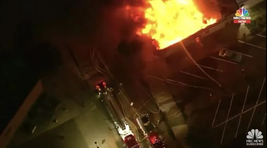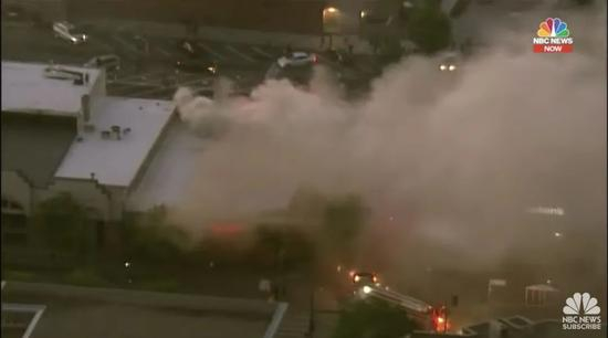 5月27日,明尼阿波利斯警察局旁边的一家汽车用品店Autozone被示威者点燃。占地面积巨大的商场一瞬间火光冲天。NBC电视台的直升机记录下了这一幕