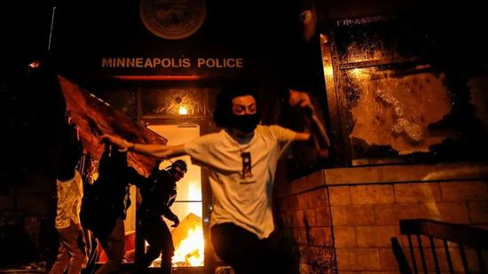 周四晚上,示威者冲入了明尼阿波利斯的第三警察局开始纵火。