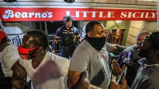 在过去的美国的又一个动荡的夜晚,全国30多个城市的抗议者们,经过一夜的愤怒,留下了烧焦的车辆、破碎的玻璃以及涂鸦、垃圾和废墟。