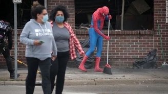 蜘蛛侠街头打扫抗议者留下的废墟 这是美国的又一个早晨
