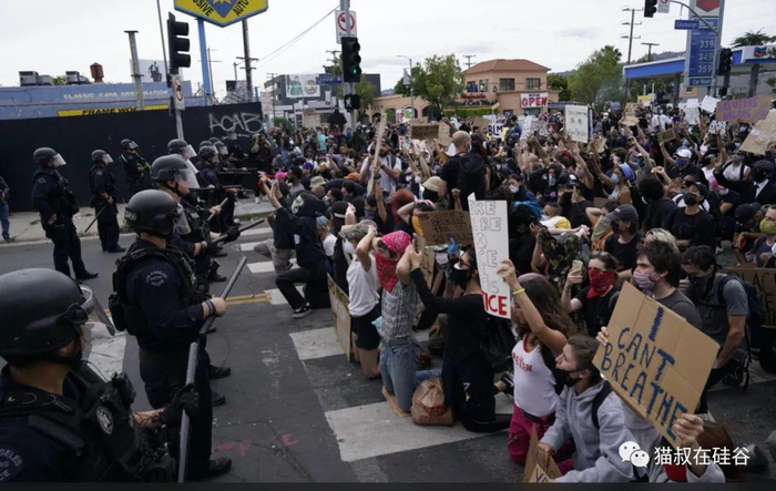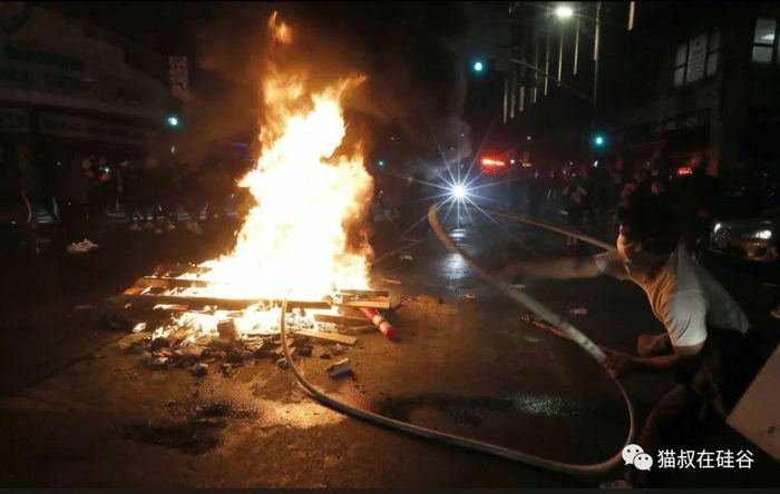 硅谷所在的旧金山湾区同样被卷入其中。不仅是圣何塞、奥克兰、旧金山这样的大城市,连Milpitas、San Leandro等中小城市,都出现了抗议分子对峙警察,围堵高速公路,打劫商场商店,哄抢包裹车辆,焚烧沿路建筑等骚乱行为。旧金山市长已经申请调动国民警卫队来维持治安。受局势升级影响,湾区主要城市已经陆续宣布紧急宵禁,禁止民众在晚上八点半和早上五点之间外出。