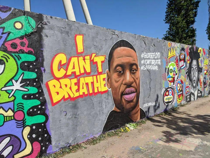 5月30日至31日,德国首都柏林连续2天举行抗议美国种族歧视的示威活动。上千德国人聚集在美国驻德国大使馆门前,高举“停止杀害我们”和“黑皮肤不是犯罪”等标语。在柏林墙公园(Mauerpark)内的一段柏林墙上,有艺术家创作了一副弗洛伊德的肖像画,并在旁边写上“我无法呼吸。”
