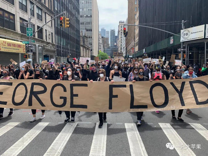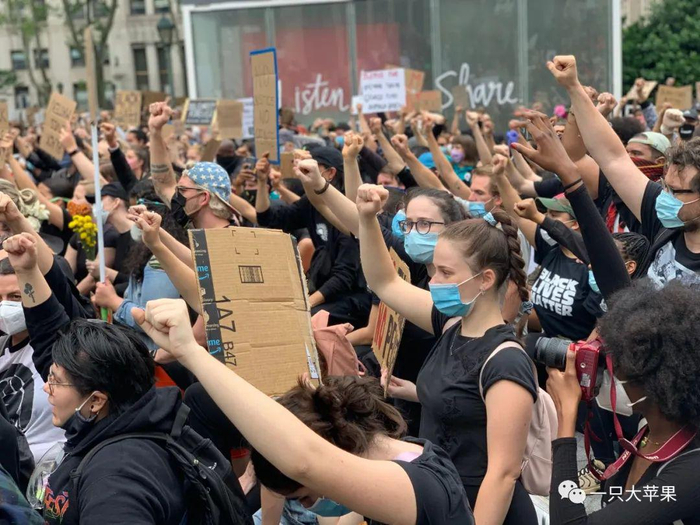 示威中,“黑人的命也是命”、“我无法呼吸”等口号此起彼伏。但最让我感到震撼的,是近万人同时单膝下跪,右手高举拳头,呼喊包括佛洛依德在内的因警方滥用暴力致死的亡者的姓名。