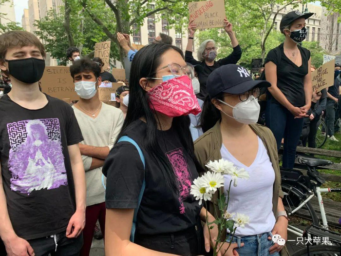 我问她为什么会来到现场参与示威,她说,“我平时在学校就听到一些歧视亚裔华裔的言论,这种歧视在新冠爆发后更甚。非裔也是种族歧视的受害者,我觉得这让非裔与亚裔之间有某种特殊的联系,我想我能够做的至少是出现在这里,给他们一些支持。”