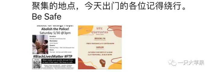 还有一些人在朋友圈特地告知华人未来几天示威的游行地点和时间,用意不是呼吁大家前去参与,而是避开这些“高危地带”。
