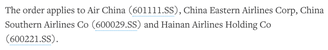 根据中国各航空公司此前发布的6月份航班计划,该命令将影响国航运营的北京-洛杉矶航线、南航运营的广州-洛杉矶航线、东航运营的上海-纽约航线等多条航线。