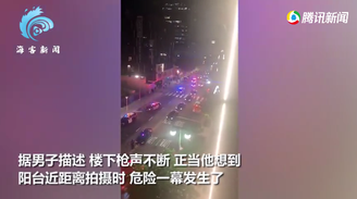 疑似有人从楼下朝拍摄视频者的位置开了一枪,打到阳台附近。