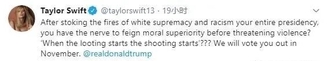 特朗普凉了,连美国歌手霉霉都带头在社交媒体上表示,11月要把特朗普投下台,获得百万点赞。