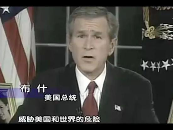 当时萨达姆·侯赛作为“恐怖主义”的头号代表性人物,以美国为首的英美国家宣布以“萨达姆拥有大规模杀伤性武器”为由,向伊拉克发动战争。