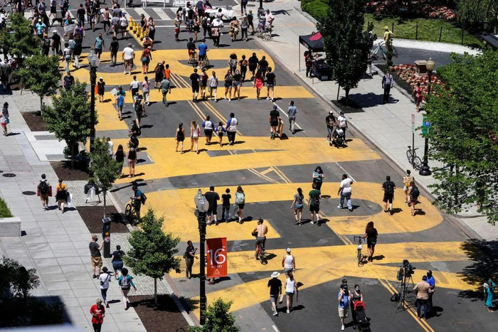 上周,华盛顿特区市长穆里尔·鲍泽(Muriel Bowser)让人在通往白宫的街道上用黄色大字画上了 “Black Lives Matter”,还将拉斐特公园( Lafayette Park)前的广场指定为“黑人生命也重要”广场。