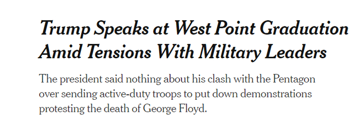 特朗普于13日在纽约出席美国西点军校2020年毕业典礼。