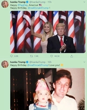 第一条附上自己小时候和父亲的亲密合影,第二张也是合影,但背景是醒目的星条旗。