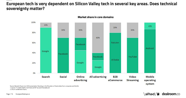除了欧洲互联网门户大开导致的数字主权问题之外,科技领域这一块经济大蛋糕的丢失也令欧洲人感到不安。